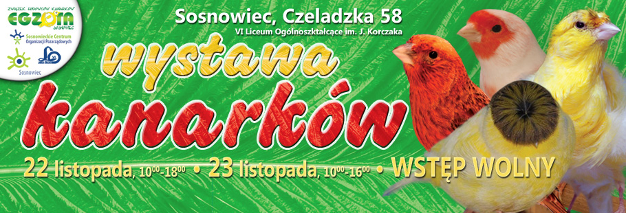Hodowcy Egzoty zaprezentują około 400 kanarków w ponad 20 różnych rasach. Można będzie posłuchać kanarków harceńskich oraz pooglądać kanarki kolorowe, kształtne i inne ptaki egzotyczne. Współorganizatorami są Wydział Kultury i Sztuki Urzędu Miejskiego w Sosnowcu, Sosnowieckie Centrum Organizacji Pozarządowych oraz VI LO im J. Korczaka.