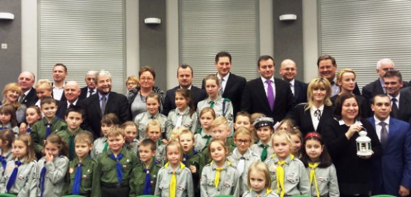 W przerwie obrad harcerze przekazali samorządowcom Betlejemski Światło Pokoju.
