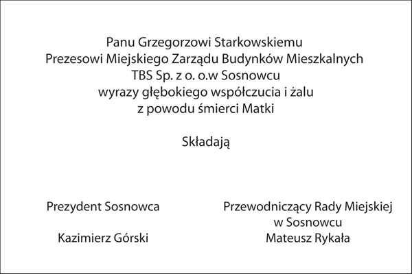 Kondolencje 2012-09-06 | kategoria Urząd Dodał mb Poleć znajomym Email odbiorcy Imię i nazwisko nadawcy Email nadawcy Text Link powrót